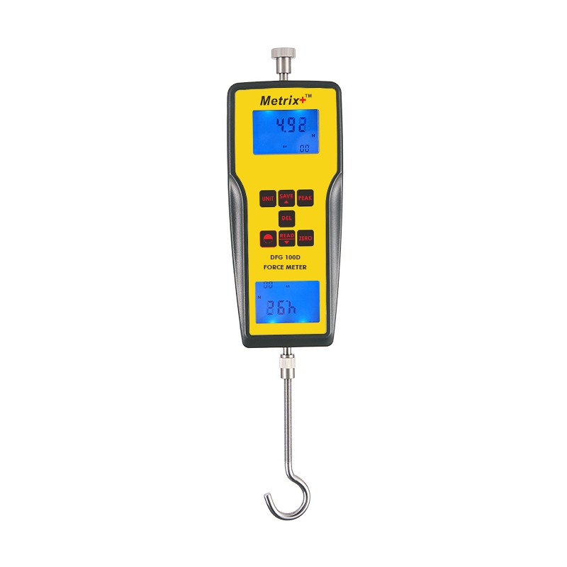 This can be used to measure upto 980N/100kgf force, with real time and peak value, data storage, convertible measurement units, and 2 reversed LCD.