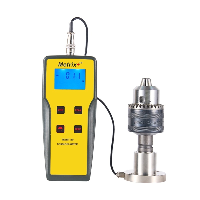 Measure torque conveniently, upto 20Nm/ 2kgfm, with three jaw chuck size 3~16mm, convertible units N/ kgf/ lb /gf, real time and peak value and large backlit LCD